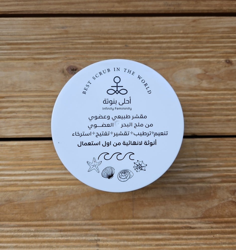مقشر اللافندر بالأملاح البحرية النقية والغنية بالزيوت العضوية الطبيعية يعطي بشرتك النضارة والنعومة والترطيب العميق والإسترخاء بعد يوم شاق.